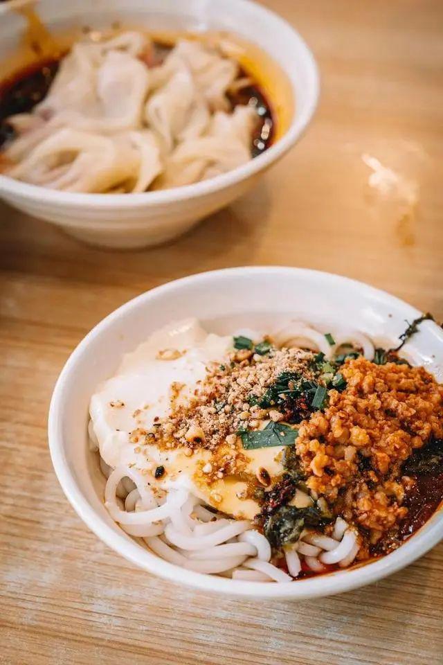 豆花和米线的结合,在陕西宝鸡很受欢迎。豆花米线,先把米线用热水烫过,然后放上豆花和所有调料,拌匀即可食用。豆花素净,米线软滑,再加上鲜辣的调料,一碗米线,口感丰富,十分美味。